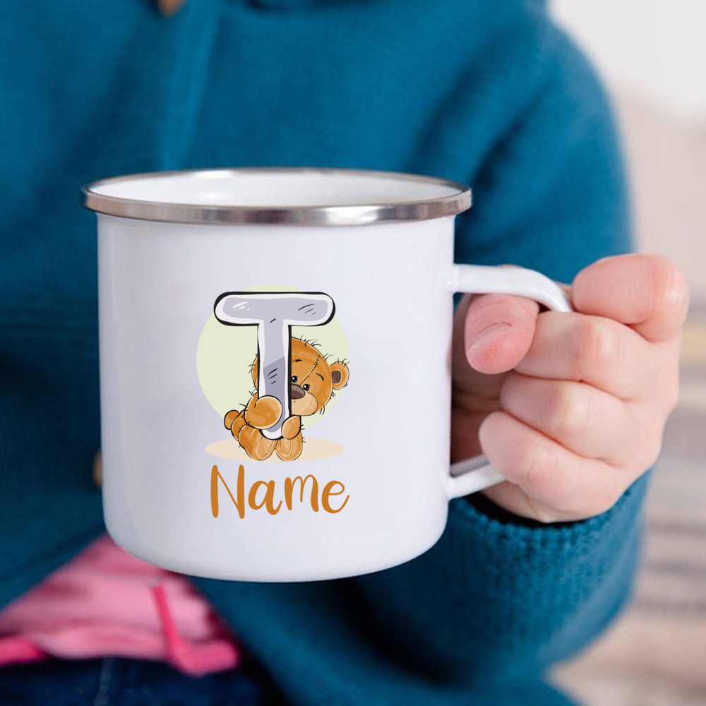 Bear Printed Creative Enamel Cup Custom Letter with Name Coffee Drink Milk Mug Handle Drinkware Personalised Kid Birthday Gifts